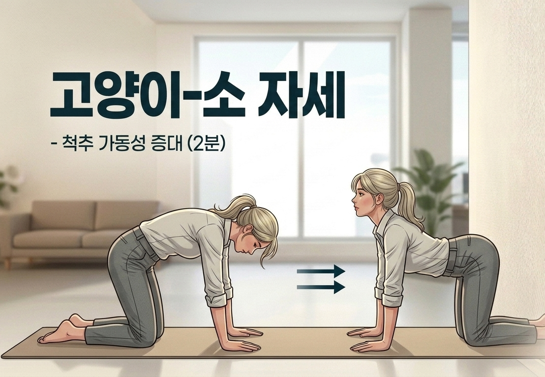 5️⃣ 고양이-소 자세 (Cat-Cow Stretch) — 척추가 살아나는 1분 (1분) 🐱🐄