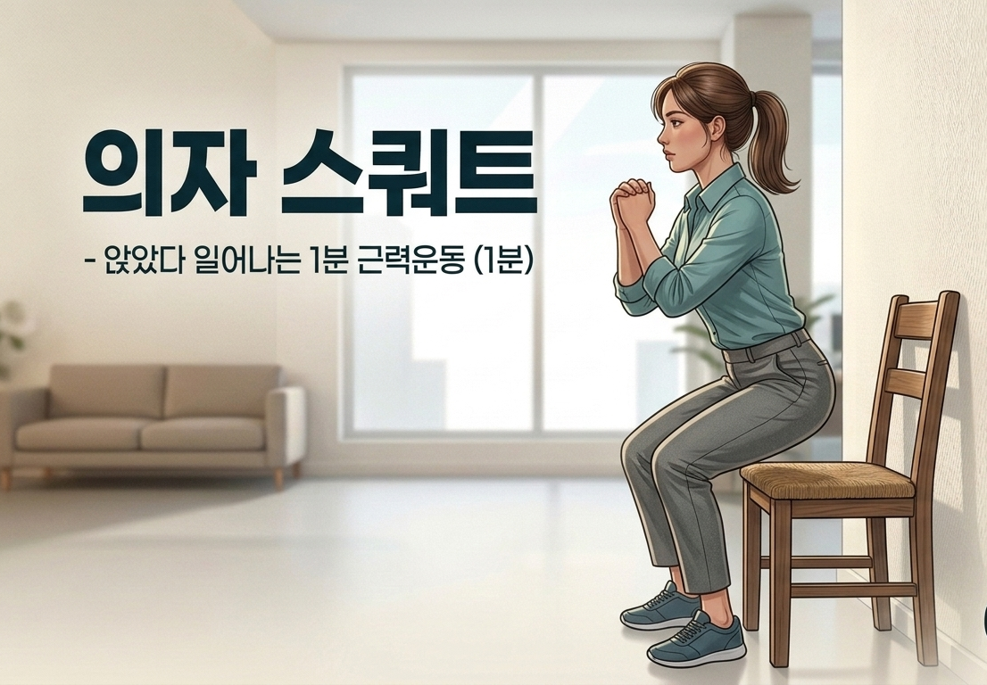 4️⃣ 의자 스쿼트 (Chair Squat) — 허벅지의 힘으로 우울을 밀어내기 (1분) 🪑