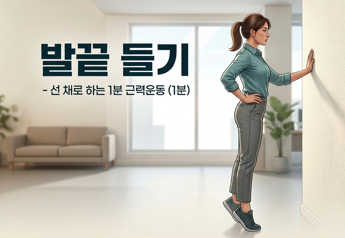 3️⃣ 발끝 들기 (Calf Raise) — 하체 활력 충전 (1분) 🦶