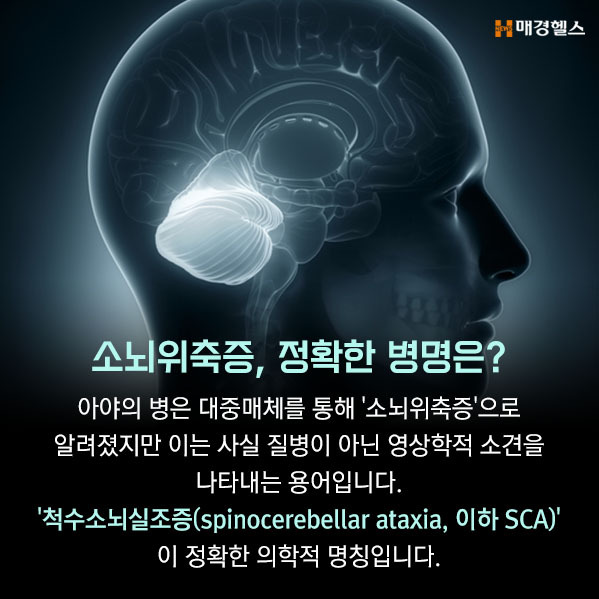 척수소뇌변성증이라는 명칭으로도 불리는데, 이는 서서히 소뇌에 퇴행성 변화가 오는 유전성 소뇌 이상 질환군을 포함하는 개념입니다. 단순히 소뇌 기능 이상만 있는 경우도 있지만, 다른 뇌 영역이나 척수, 말초신경의 이상을 동반하는 경우도 있어요.