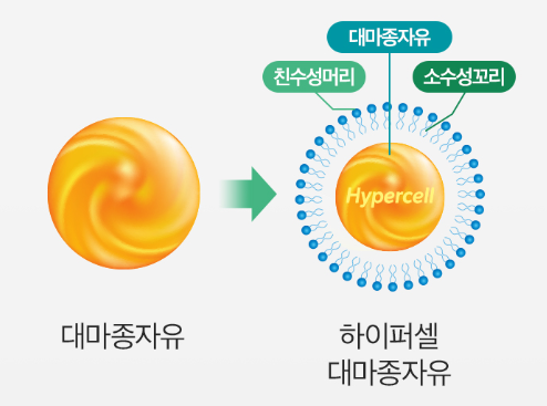 - 외부는 친수성, 내부는 소수성으로 설계해 체내 흡수력 강화.